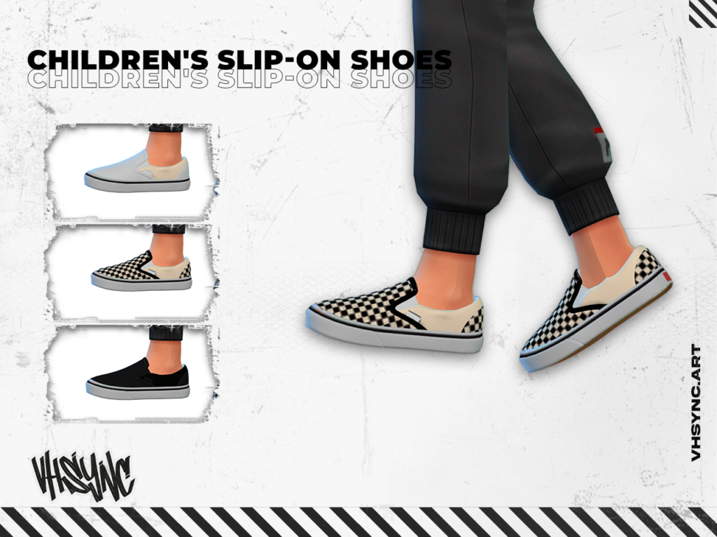 Estos Children’s Slip-On Shoes son un contenido personalizado diseñado para aportar simplicidad y estilo al armario infantil en Los Sims 4. Su diseño sin cordones facilita un look limpio y funcional, ideal para sims activos que necesitan comodidad sin perder estética.