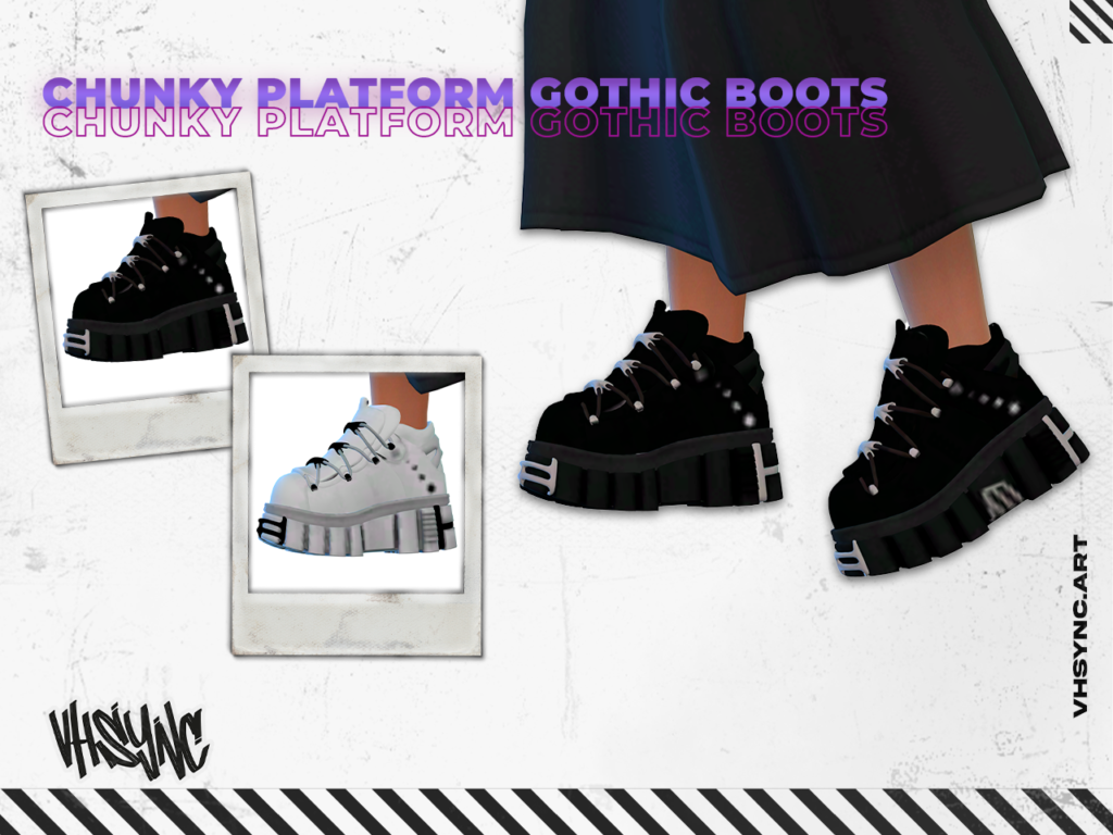 Este contenido personalizado para Los Sims 4 incluye las Chunky Platform Gothic Boots, perfectas para crear looks con carácter y estética alternativa. Su plataforma gruesa y su diseño inspirado en la moda gótica aportan una presencia fuerte que destaca en cualquier conjunto.