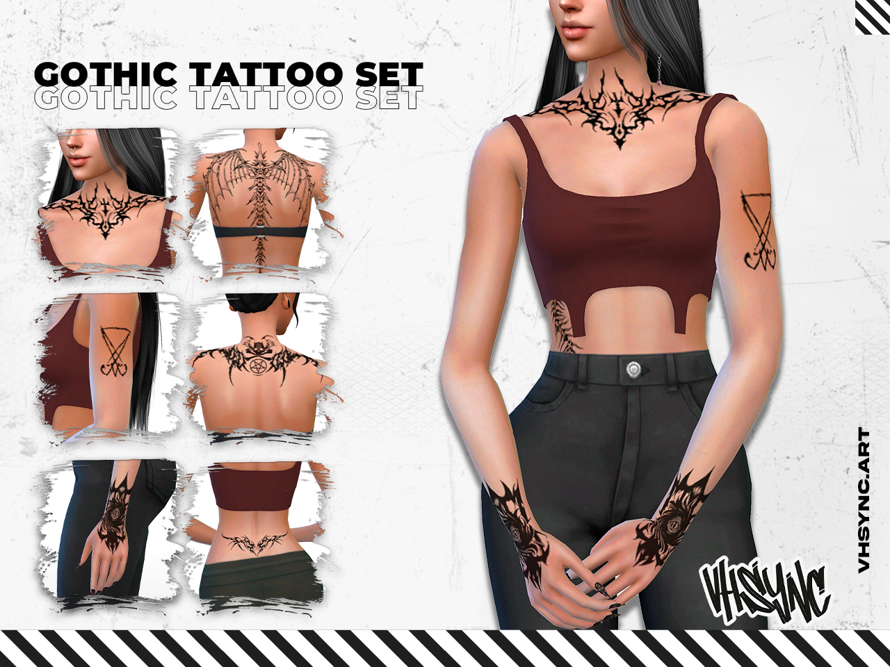 Si te gusta personalizar a tus sims con detalles que marcan la diferencia, este pack de tatuajes góticos para Los Sims 4 encaja perfectamente en cualquier carpeta de CC orientada a estilos alternativos.