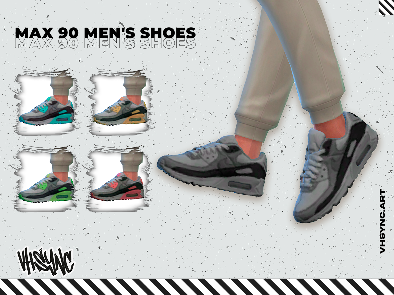 Este contenido personalizado es justo lo que necesitas: Max 90 Men’s Shoes para Los Sims 4, un par de zapatillas deportivas con diseño realista y detallado, perfectas para sims que quieren destacar con un look casual pero con estilo.