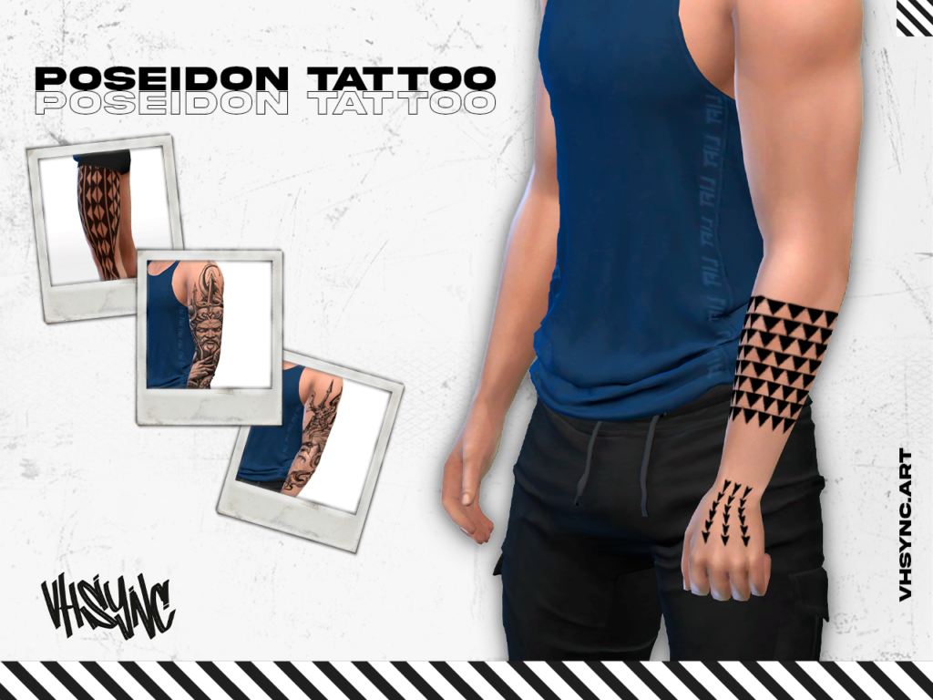 Este CC de tatuaje Poseidon para Los Sims 4 está diseñado para quienes quieren añadir un toque poderoso y elegante a sus personajes. Se trata de un set de tatuaje para el antebrazo inferior izquierdo, inspirado en el dios del mar, con un diseño limpio y bien definido que encaja tanto en estilos oscuros como realistas.
