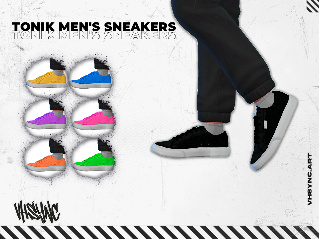 Las Tonik Sneakers son compatibles con Sims masculinos desde adolescentes hasta ancianos, y combinan perfectamente con jeans, shorts o atuendos deportivos. Su textura detallada y acabado realista las convierten en un imprescindible dentro de cualquier colección de calzado personalizado.
